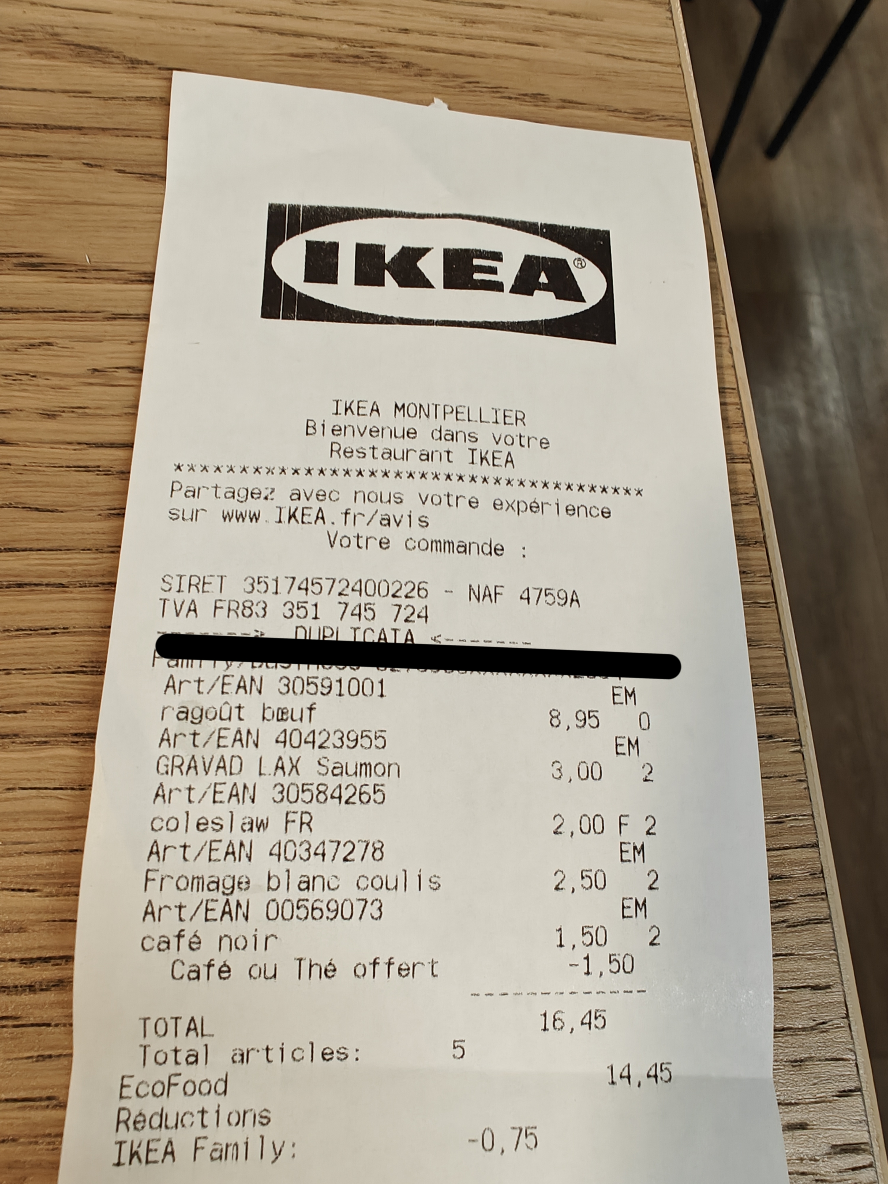 Juste un café en attendant nos articles mais café offert car nous avons la carte ikea family