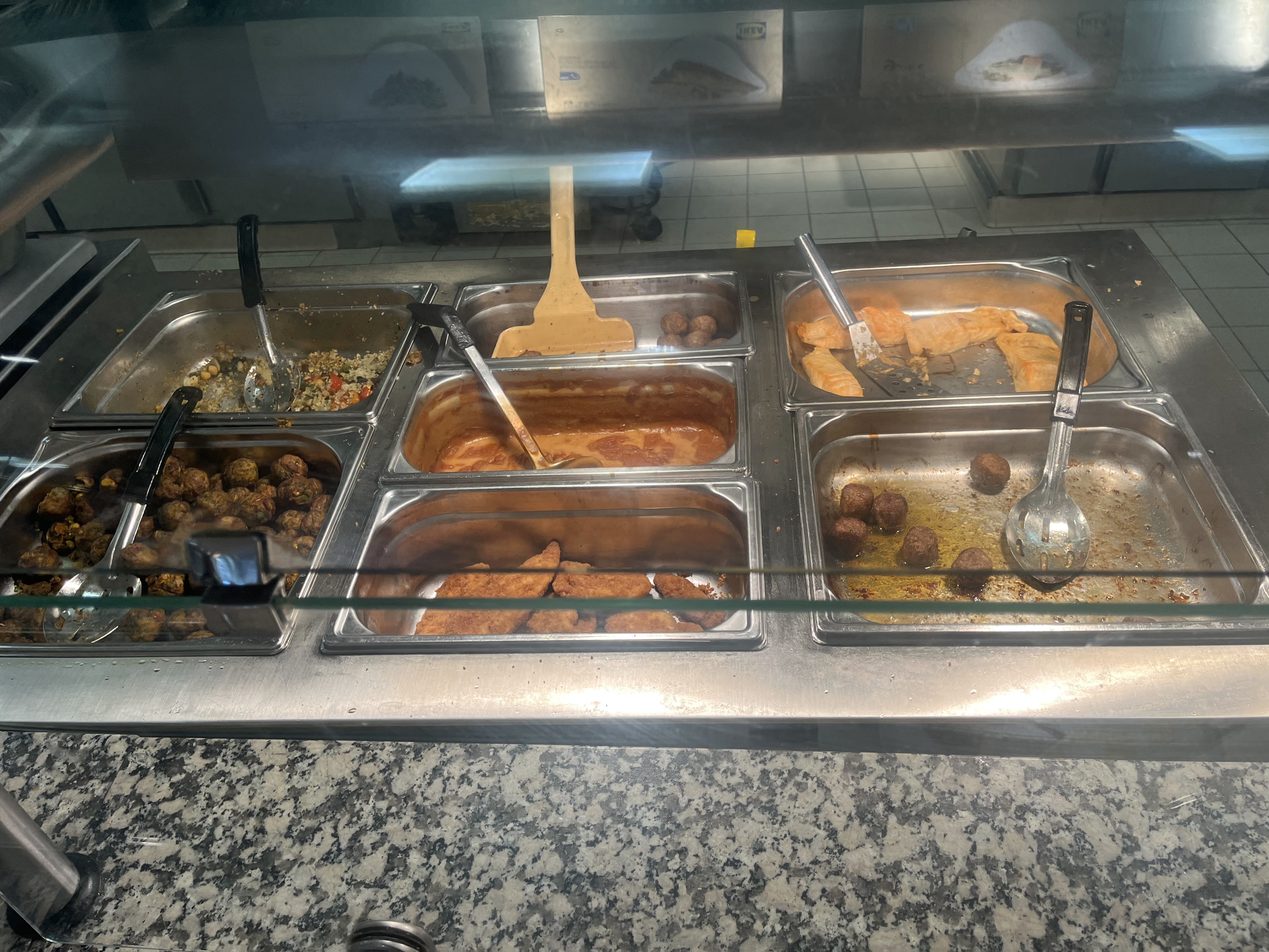 Repas dégueulasse, haricot trop cuit ,poisson pané trop huileux. Arriver a 18h30 a peine il ne restait casiment rien .a part l'hôtesse de caisse sympa sinon vraiment pas agréable, regrette d être venu .ikea family changer votre logo.