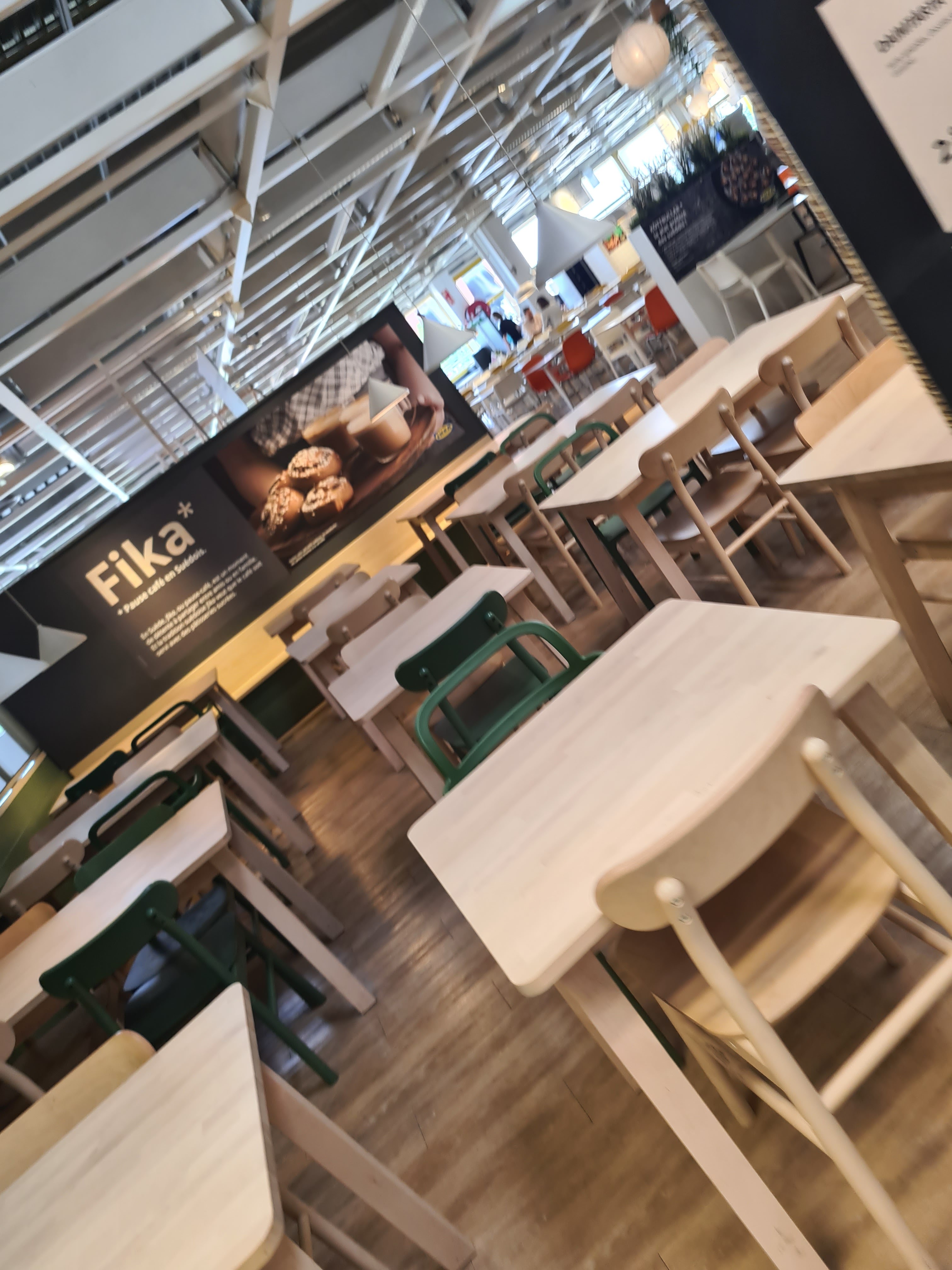 On fait la queue, on arrive aux choix du plat chaud et quelqu'un vous crie haut et fort Saumon ou boulettes ? vous pressant de prendre votre choix instantanément sans réfléchir. Puis tout de suite après, mais vraiment tout de suite après, la même personne, purée, haricots, frites ou riz ? vous incitant à répondre très, très rapidement, encore sans réfléchir. Pas de bonjour ni... Plats pas bien servi, pas copieux. Il n'y a plus de choix de vin et de bière, il n'y avait que 3 pichets pré-rempli qui contenait un peu moins de 25cl de vin rouge. Arrivée à la caisse, avec les entrées et plats pris, on a une facture au prix d'un vrai resto (je vous rappelle qu'on est dans un self, une cafétéria). Arrivée dans la grande salle à manger, pas de pichets pour l'eau (peut-être pour vous inciter à acheter de l'eau en bouteille la prochaine fois ?), impossible de vous servir de l'eau en pichet, il faut se lever à chaque fois pour remplir à nouveau son verre. Avant (l'Ikéa d'avant, il y a quelques années), j'aurais donné 3 voire 4 étoiles, il y avait un bon rapport qualité-prix. Mais là, la qualité, l'accueil et le choix n'est plus à la hauteur. J'hésite entre 1 et 2 étoiles, mais je n'y viendrai plus. Je peux manger dans un bon resto à midi pour ce prix ! 1 étoile donc !