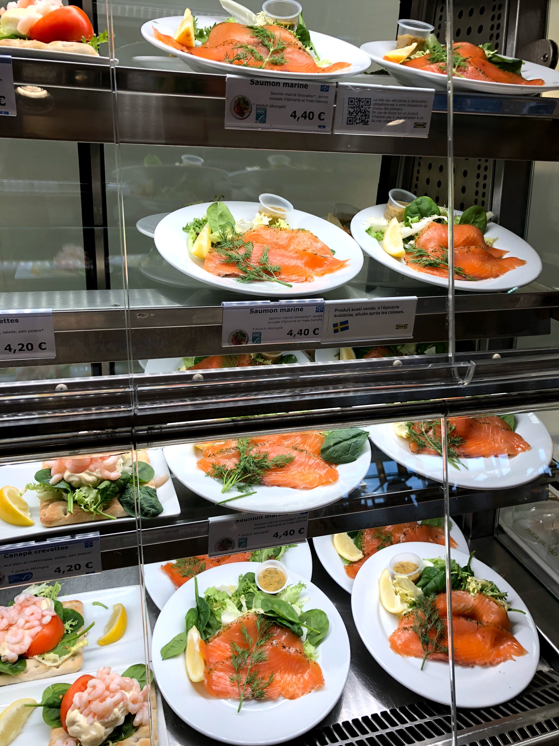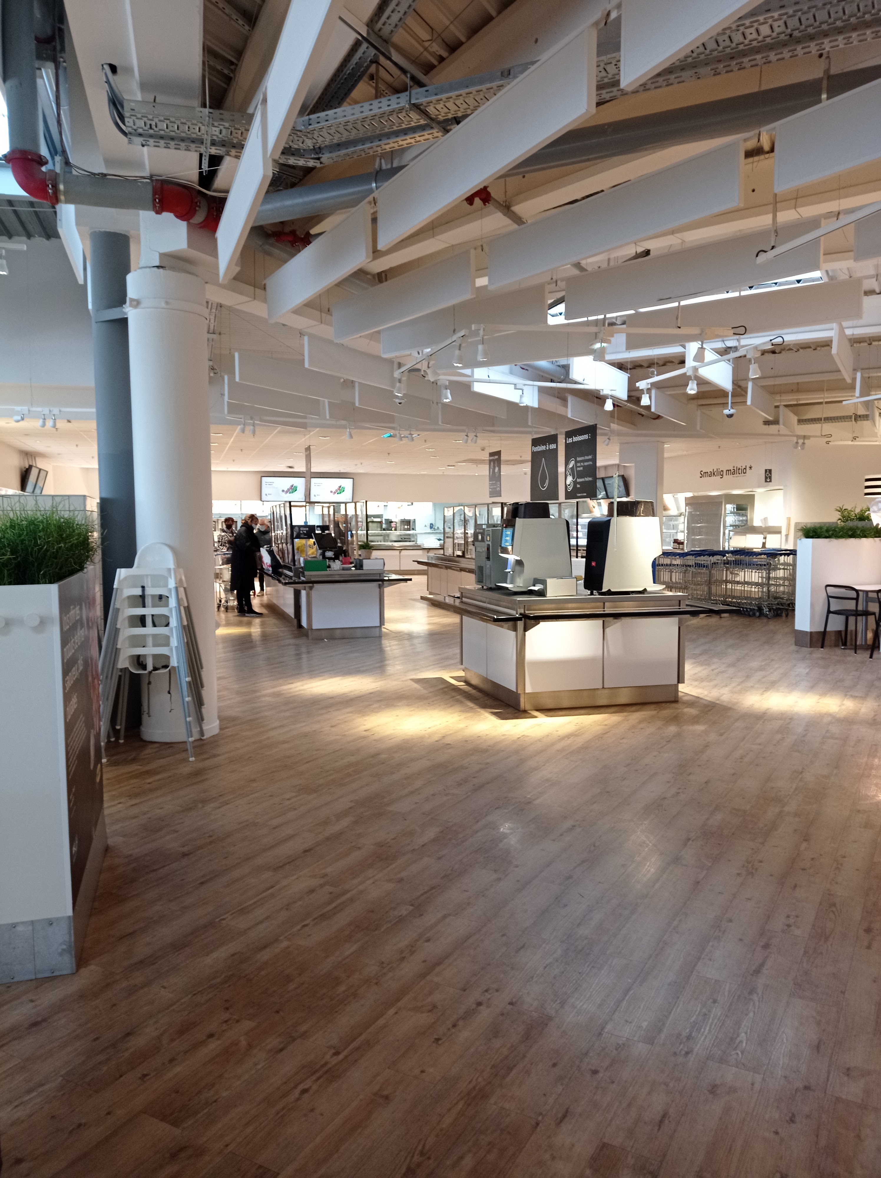 Le pire IKEA que j’ai vu Morceau de saumon taille xxs 1 seule machine à café fonctionne Pas très propre et très bruyant