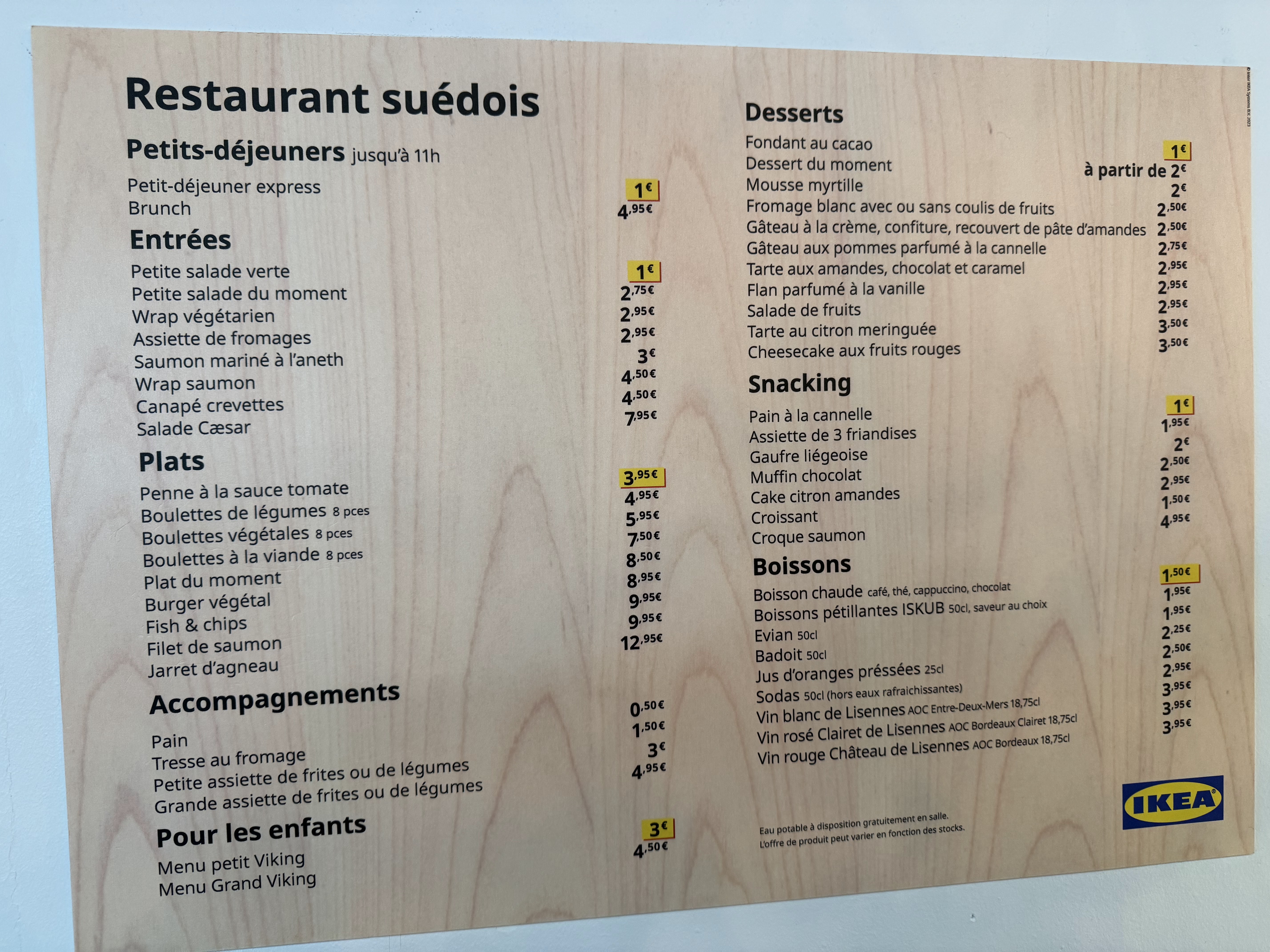 Repas simple et efficace, les menus classiques du Suédois sont au rendez vous. N oubliez pas la boisson chaude est offerte avec la carte IKEA FAMILY.