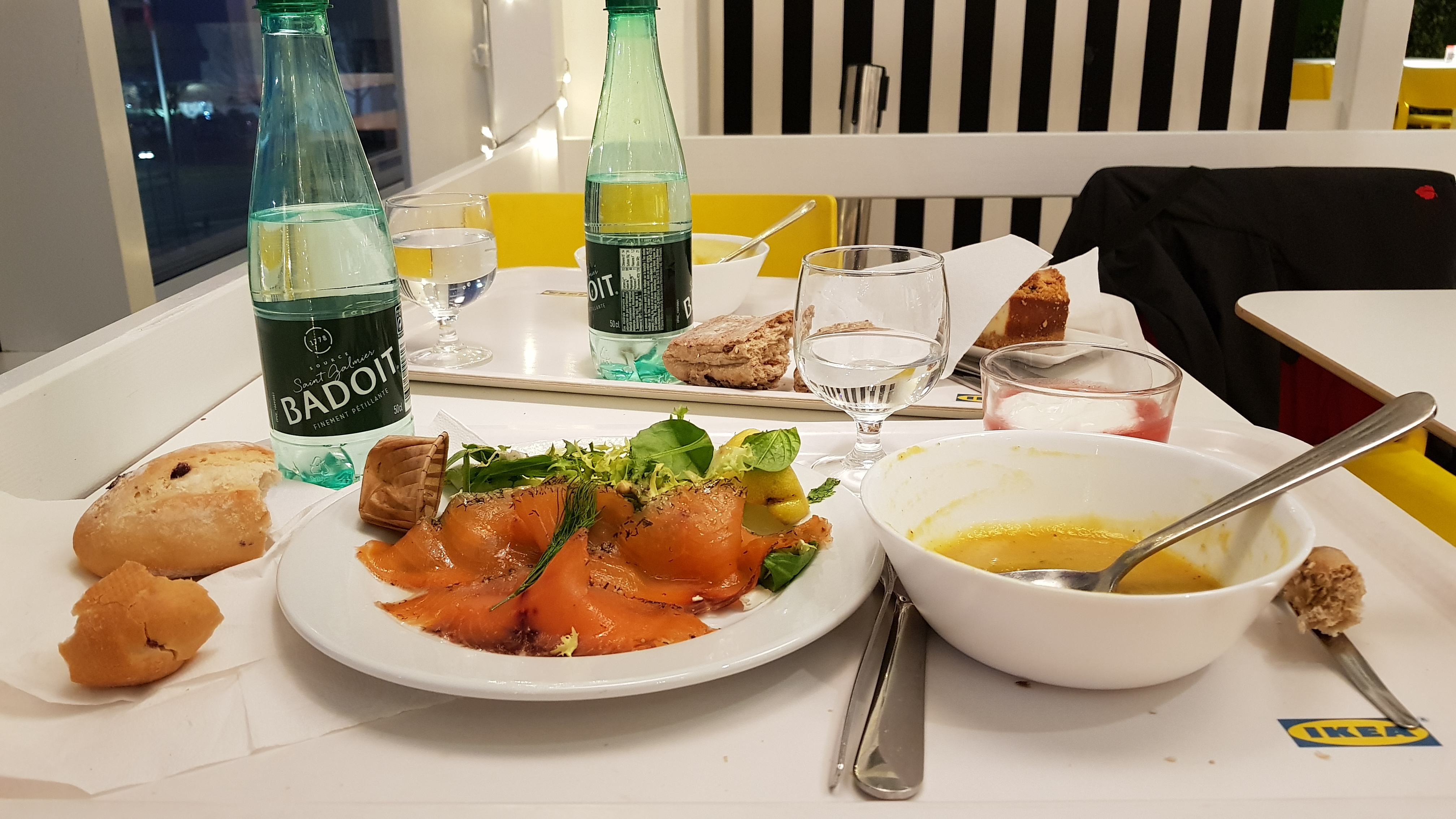 Sans hésiter, j'avais choisi la fameuse souris d'agneau. C'était encore meilleur que dans mon souvenir, accompagnée d'une bonne purée. Saumon en entrée. Dessert cheesecake pas à la hauteur (de la veille?) Et les cafés ☕️ à volonté, c'est offert si vous êtes porteur de la carte Client Ikéa. Une bonne expérience. Restaurant bien tenu, propre et pimpant de couleurs gaies. Personnel souriant. Bravo ! Continuez !