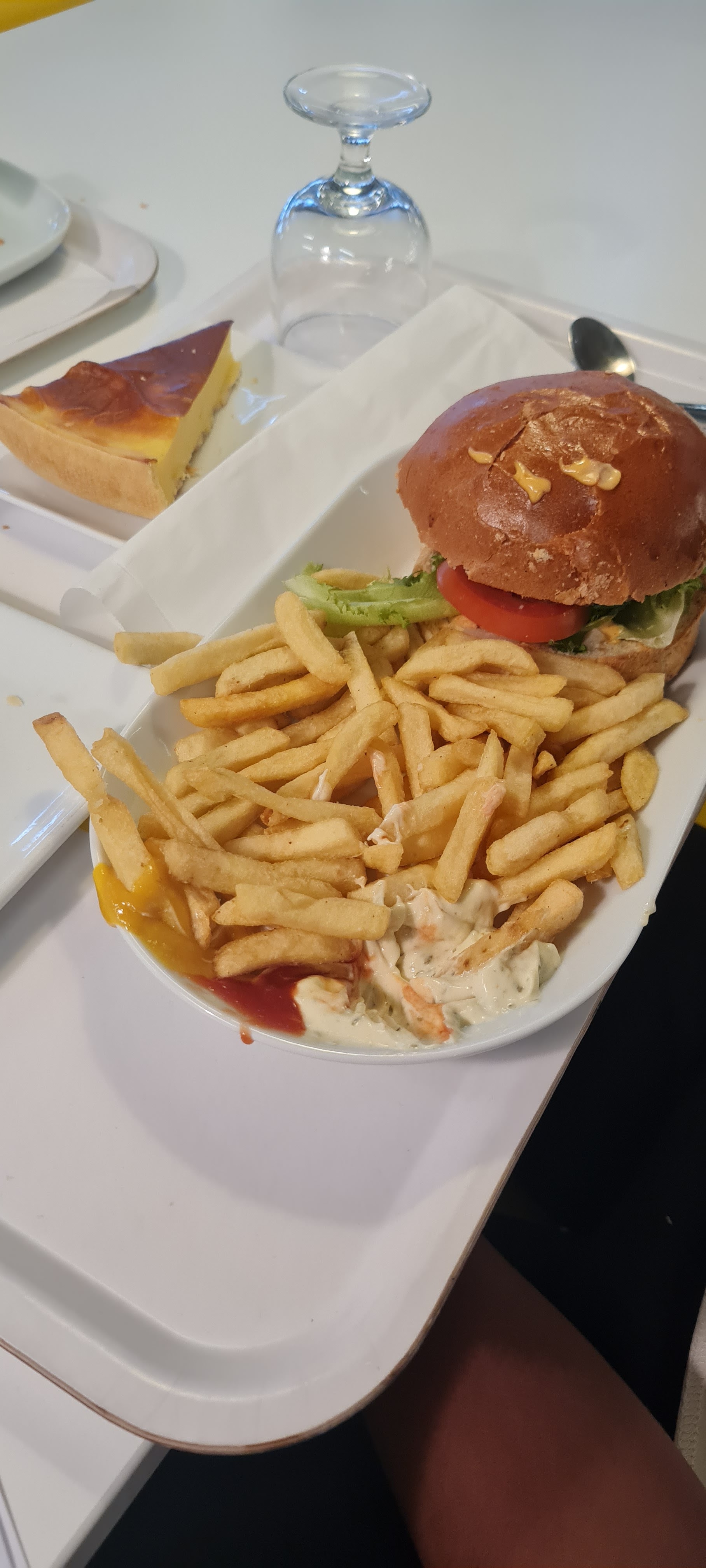 Excellent jarret d’agneau très tendre, et juteux! Les frites étaient bien croustillantes et la purée était très bonne aussi! Pour la galette aux crevettes, la galette manquait un peu de moelleux Les gâteaux et muffin sont très bons Sur le choix des boissons, il manque la possibilité d’avoir une eau pétillante sans sucre et aromatisée (citron ou autre). Celle qui sont proposées contiennent du sucre inverti et des additifs