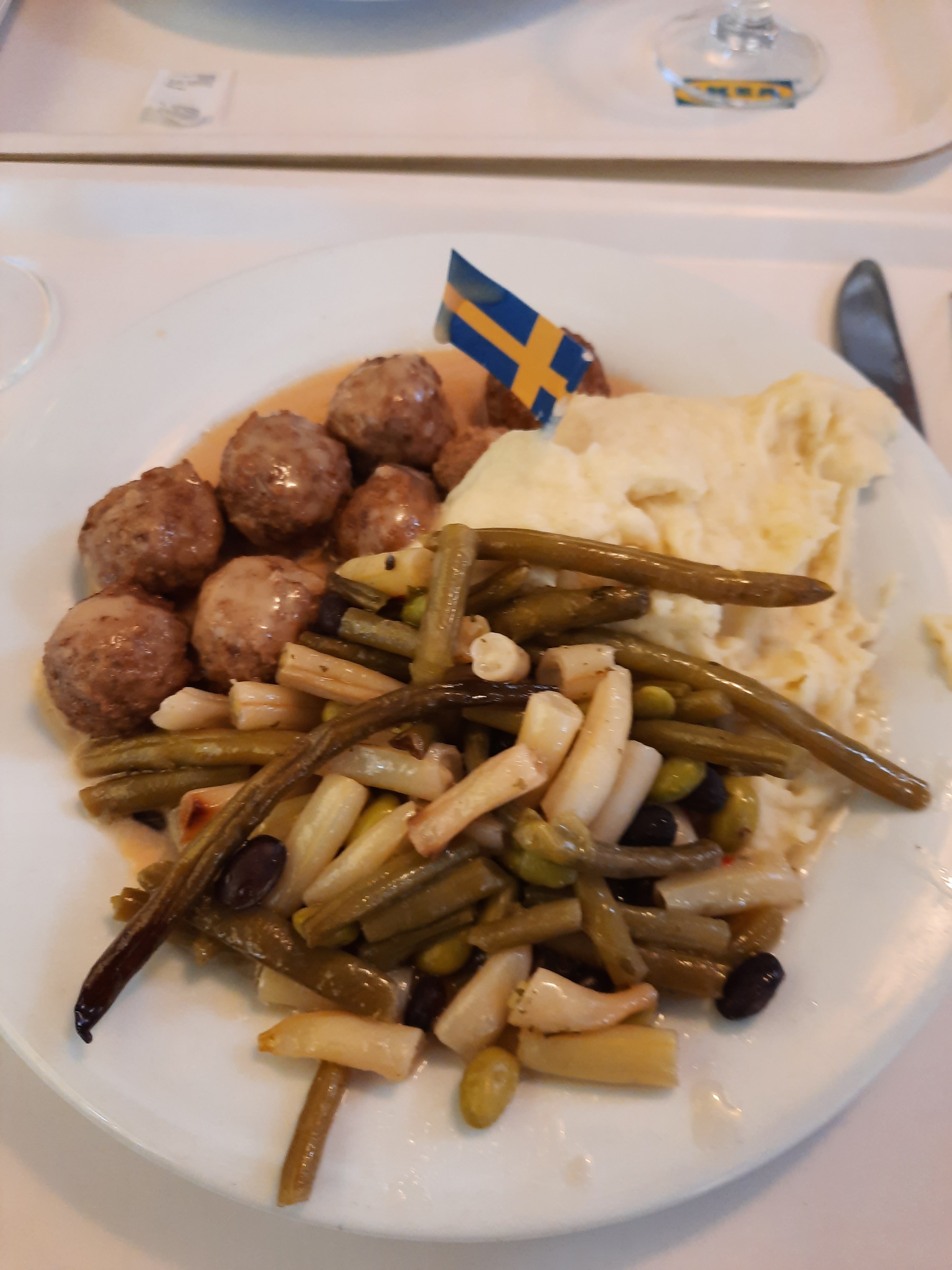 La purée était bonne , le mélange d'haricots verts aussi et les boulettes suédoises de bœuf et porc étaient juteuses et moelleuses. Le tiramisu était également bon , mais n'était pas trop sucré, juste ce qu'il faut.